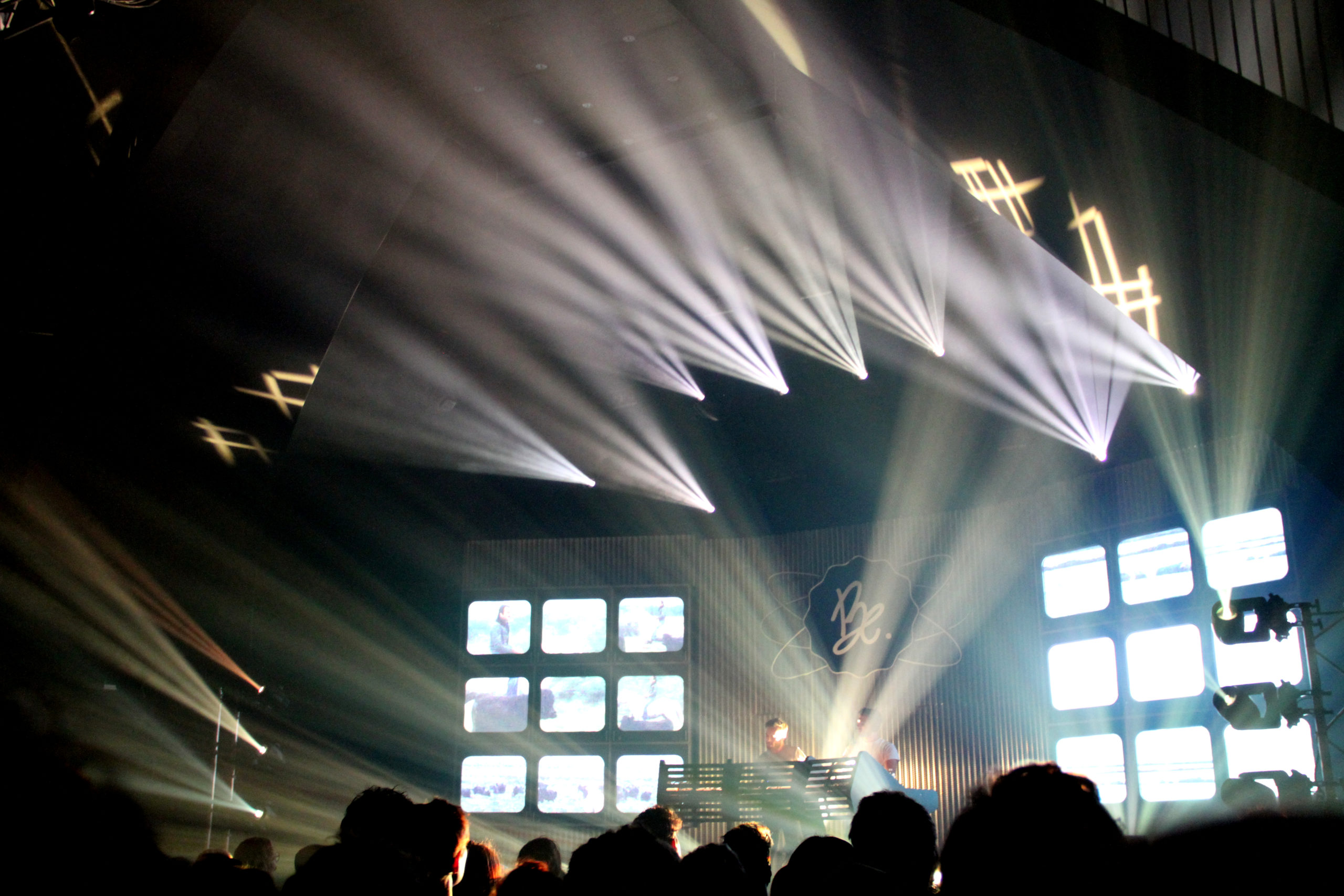 Sur scène, ce sont Arnaud et Pierre qui mènent la danse. De part et d’autre des deux gaillards, de nombreux écrans, similaires à des téléviseurs à tubes cathodiques, qui confèrent à la scénographie une touche rétro. Entre jeux de lumière et projections de leurs différents clips, le concert de Bon Entendeur s’avère agréable visuellement parlant.