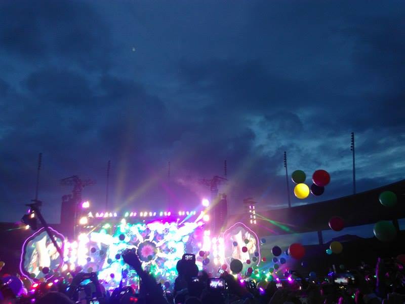 Les chansons s’enchaînent et le groupe sait transporter son public dans un autre univers : feux d’artifices, paillettes, ballons… Chaque bracelet distribué à l’entrée clignote dans le noir: des milliers de points lumineux illuminent le stade. Tout le monde chante en cœur.