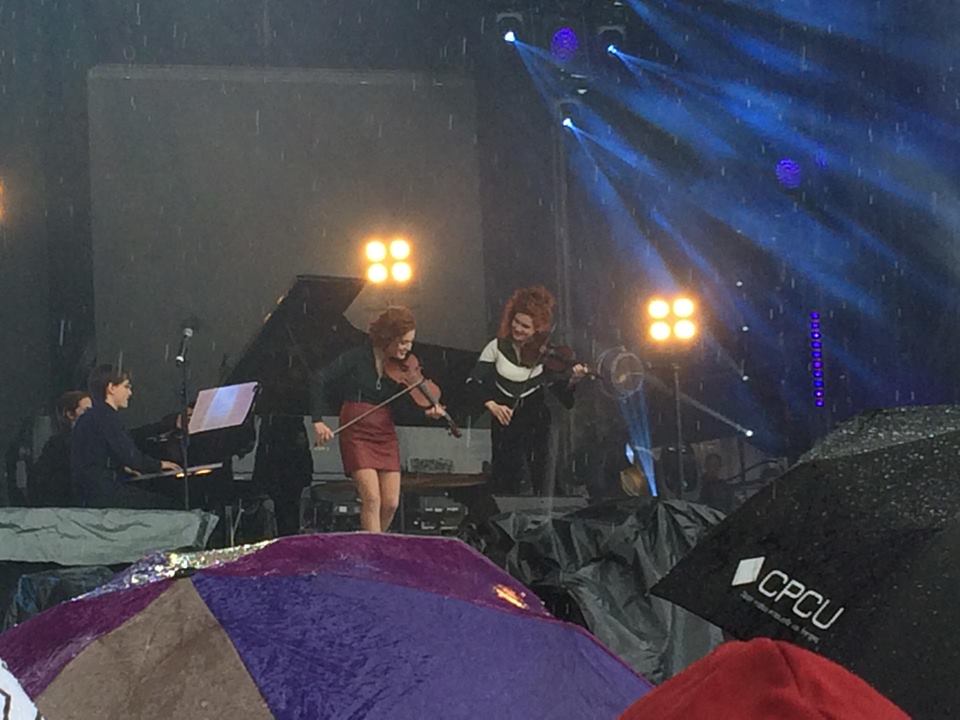 Enfin, un peu de douceur pour commencer les concerts du dimanche avec Cyril Mokaïesh, Yvan Le Bolloc’h ou les soeurs Berthollet, véritables prodiges du violon et du violoncelle, venues nous interpréter les plus grands airs de musique classique. Malheureusement, la pluie est venue quelque peu ternir la douce mélodie jouée par Camille et Julie.