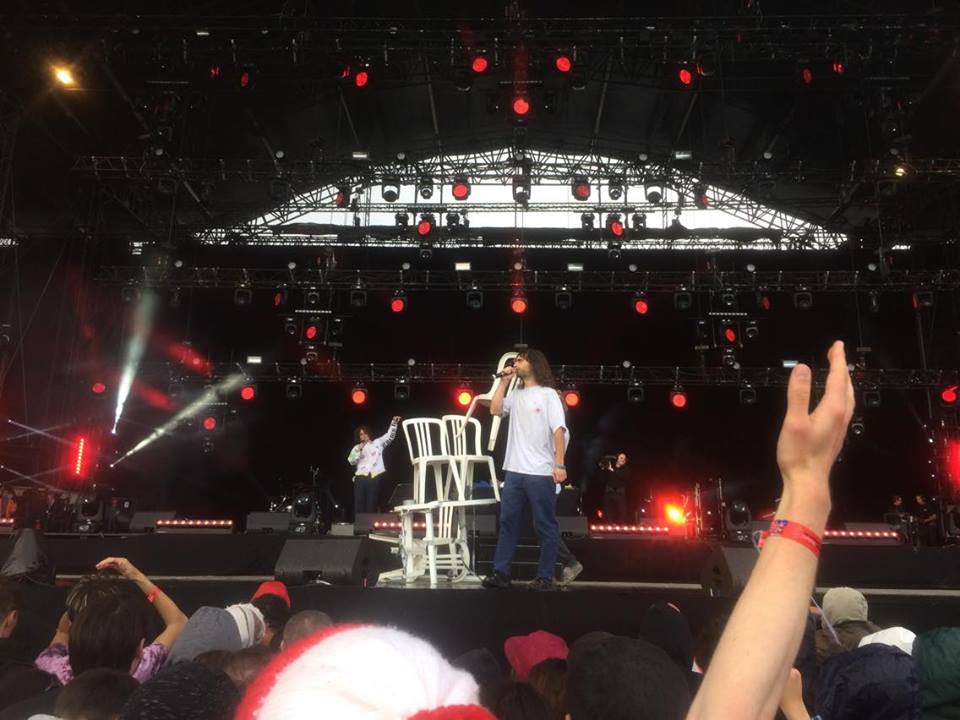 Le samedi, à 14 heures, Salut c’est Cool, comme remplacement de dernière minute de Gavin James, est venu retourner la Grande Scène, pour sa première à la Fête de l’Huma. Le groupe parisien enchaîne ses tubes, dont le célèbre Techno, toujours pareil, et pour prouver leur totale dérision, James se retrouve avec une table de jardin scotchée sur le dos. Les trublions assument pleinement leur délire.