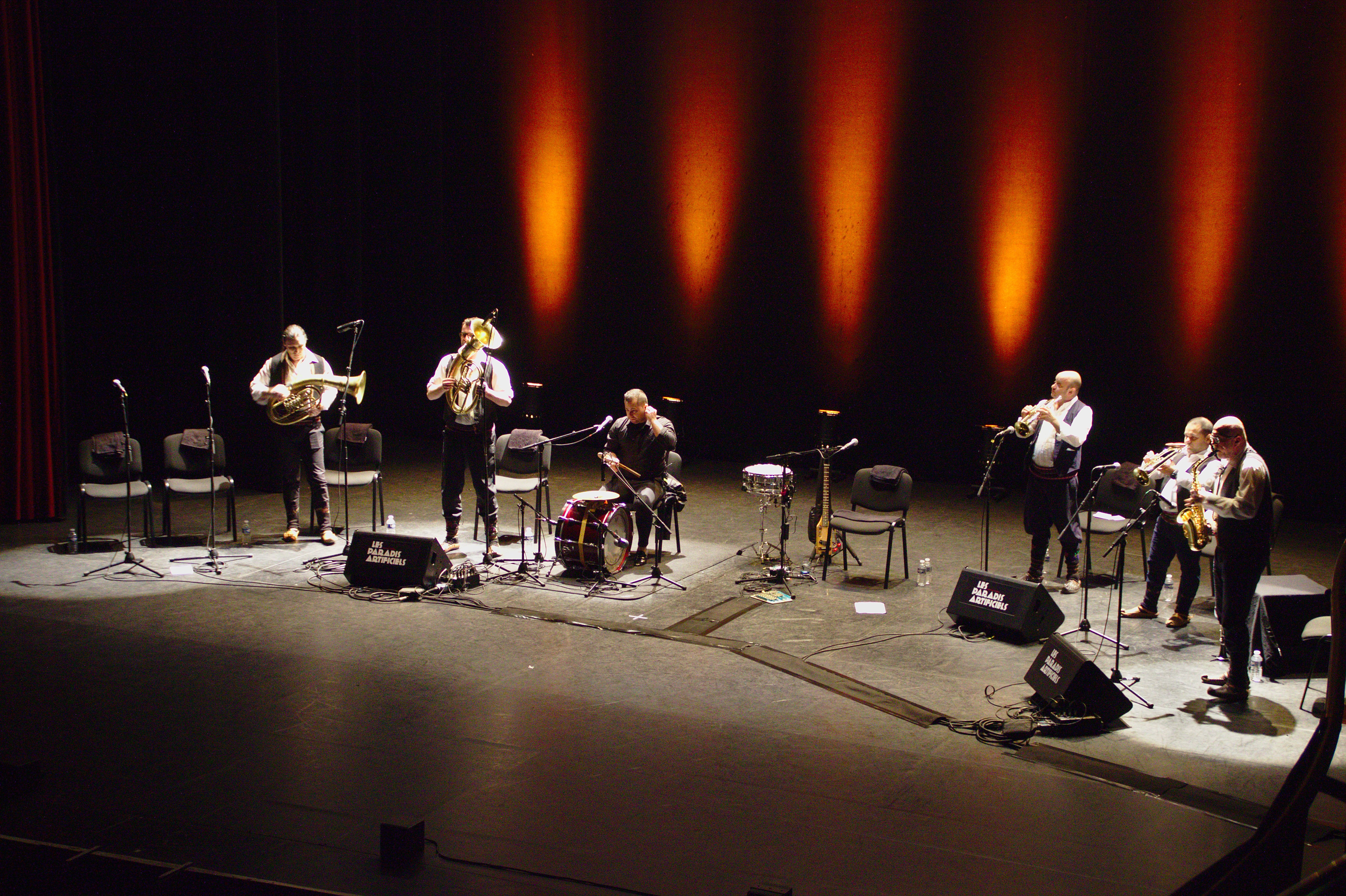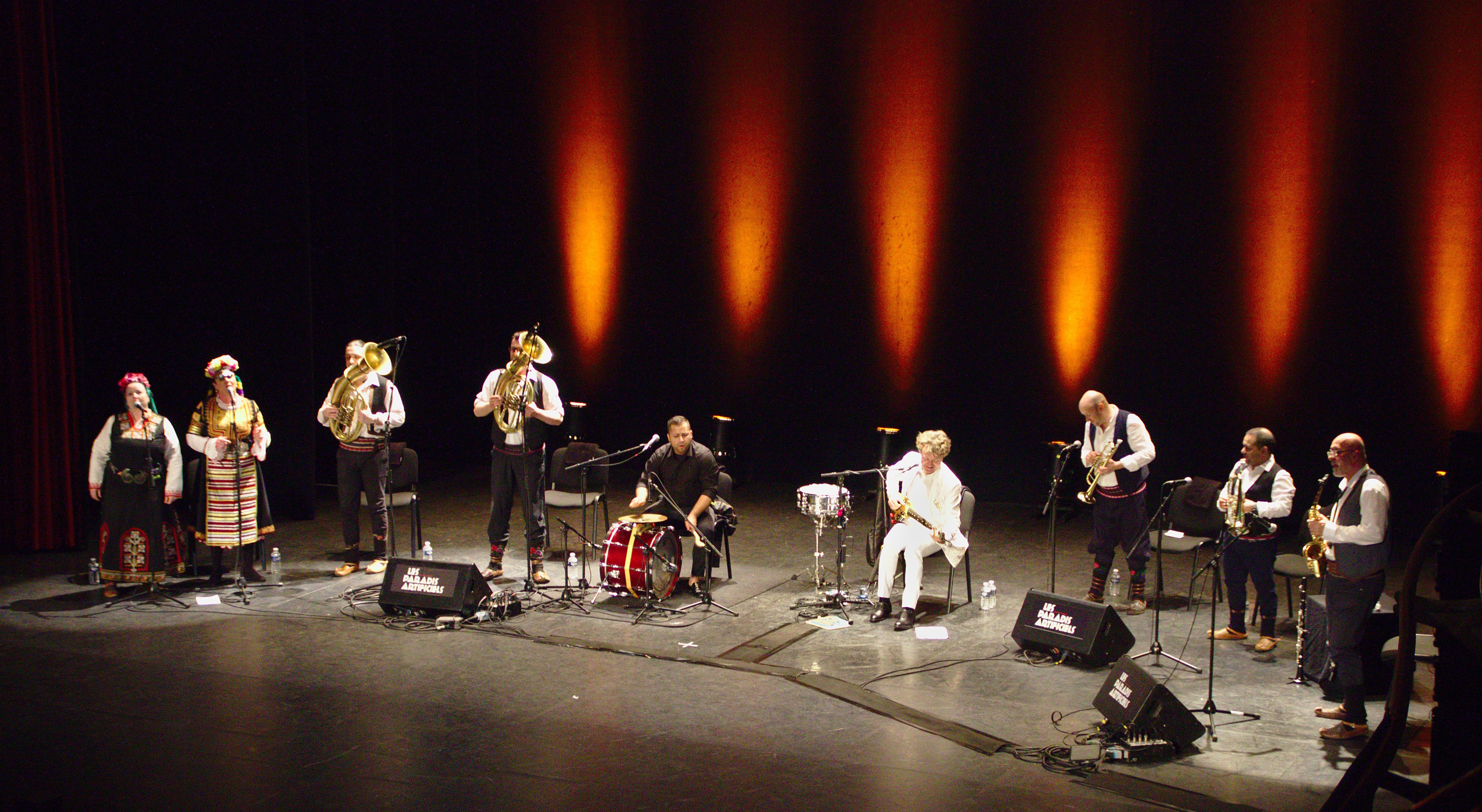 Ils sont 9 sur scène. Goran Bregovic est habillé de son traditionnel smoking blanc. Les musiciens et les choeurs revêtissent quant à eux des habits traditionnels balkans. Les instruments sont divers et parfaitement maitrisés. Tubas, trompettes ou encore clarinette, de cet orchestre émane un charme fou, impossible de se lasser, ne serait-ce qu’une seule minute, de leurs musiques. Les deux chanteuses, qui épaulent Brega, ainsi que le chanteur à le droite de ce dernier nous offrent tout trois une prestation vocale incroyable.